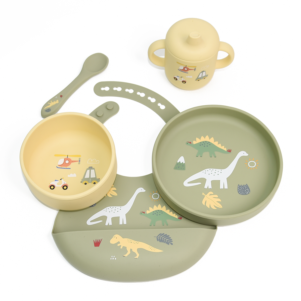 piips | Spisesett i 100% Silikon, Startpakke | Dinosaurer & Kjøretøy