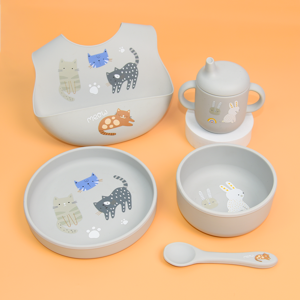 Fra en av våre leverandører får vi dette komplette spisesettet under vår egen merkevare - piips. Settet er produsert i 100% silikon, som er både FDA-godkjent og med produksjonskrav som etterlever BfR XV (LFGB) - LES MER. Pakken består av tallerken, skål, tutekopp, skje og smekke.